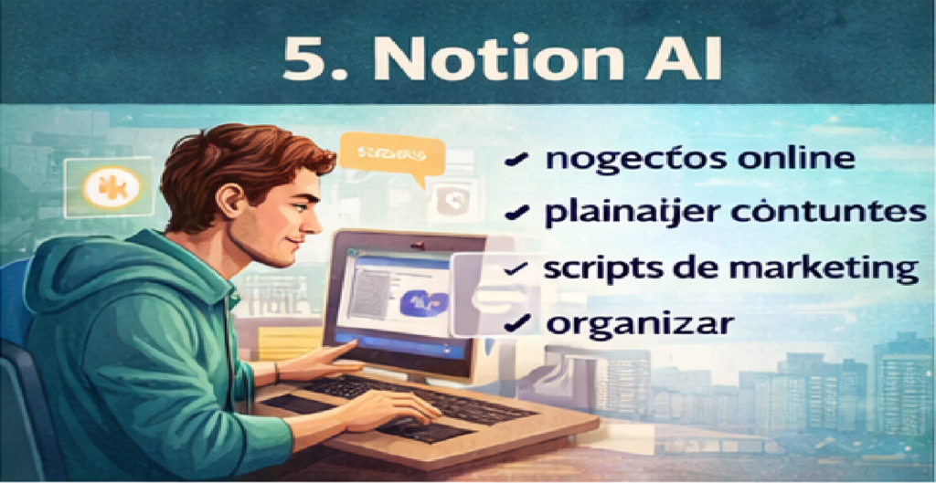 O Notion AI ajuda a organizar ideias, criar textos e estruturar projetos.